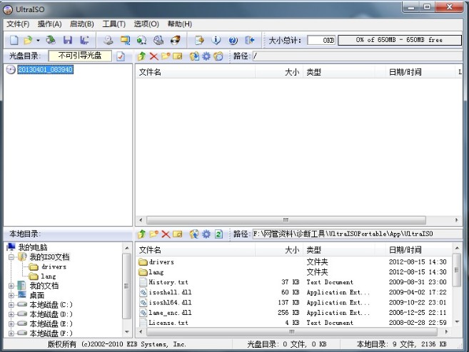 软碟通是一款功能强大而又方便实用的光盘映像文件制作编辑转换工具,它可以直接编辑ISO文件和从ISO中提取文件和目录,也可以从 CD-ROM制作光盘映像或者将硬盘上的文件制作成ISO文件。同时,你也可以处理ISO文件的启动信息,从而制作可引导光盘。使用UltraISO,你可以随心所欲地制作编辑转换光盘映像文件,配合光盘刻录软件烧录出自己所需要的光碟。