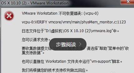 7、开启刚才创建的虚拟机“开启此虚拟机”,会看到报错(错误内容可能不同,不必理会,点确定),找到前面我们创建虚拟机磁盘存放的位置,找到os x 10.10.vmx文件,右击os x 10.10.vmx文件用记事本打开,在末尾位置添加一行命令smc.version = 0保存。