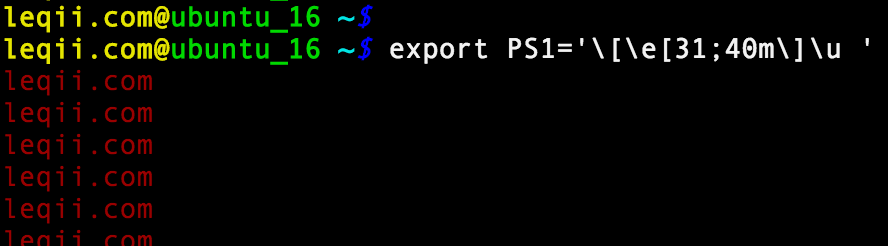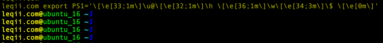 用法讲解:\[\e[0m\] 这段代码意义重大,如果代码中存在多段属性,只有一段属性用到了“样式颜色”语法\[\e[F;Bm\],这种情况如果代码结尾没有\[\e[0m\],那么其他例如\u \w \h...之类的属性全部重置为同一种样式颜色,当有两种属性用到了样式颜色语法才得以区分开;如果代码末尾加了\[\e[0m\] ,则显示的效果为用到样式颜色语法的那段属性的内容为有效果,没有用到样式颜色语法的属性即为shell终端默认样式,所以\[\e[0m\] 相对而言是有全局性的,有的网友说是“开关”我觉得是不恰当的。大家可以进行多种写法测试下便明白了。